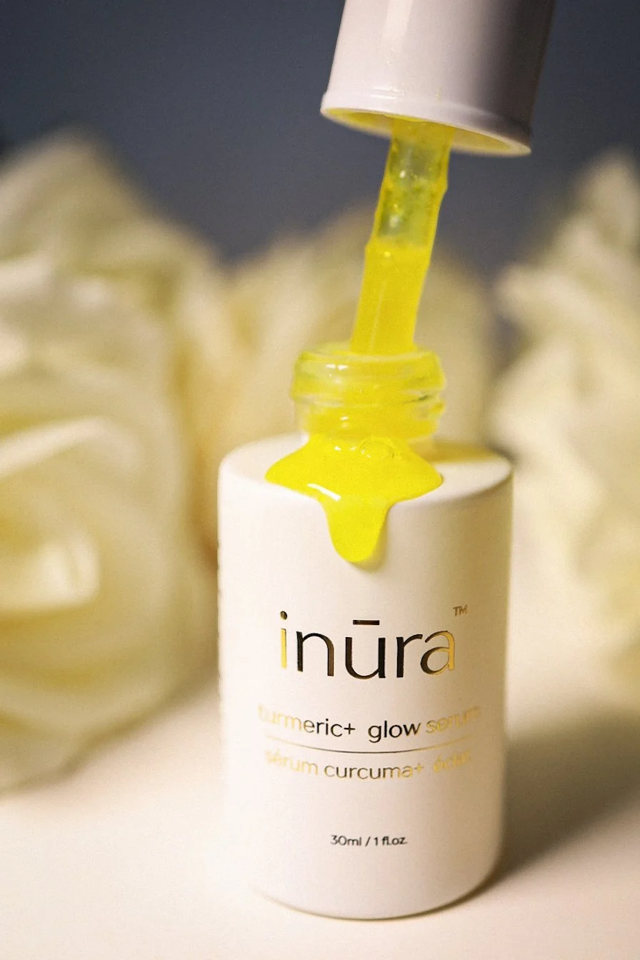 The inūra turmeric+ glow serum delivers instant hydration, radiant, and balanced skin—all with clean, conscious ingredients. All inūra products are formulated, stability-tested, and safety-assessed by Canadian cosmetic formulators in accordance with Health Canada guidelines.